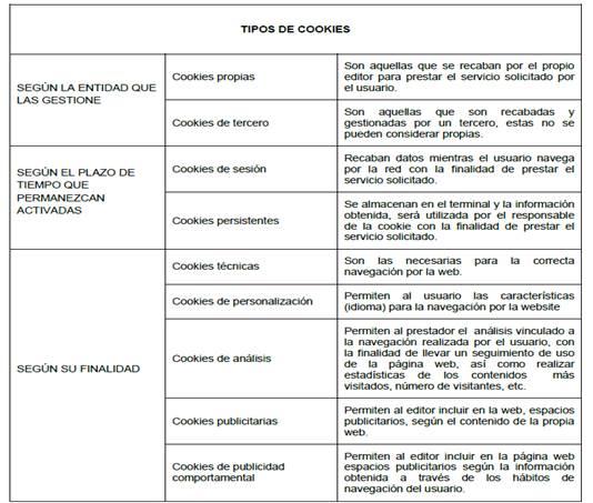 La información que le proporcionamos a continuación, le ayudará a comprender los diferentes tipos de cookies: